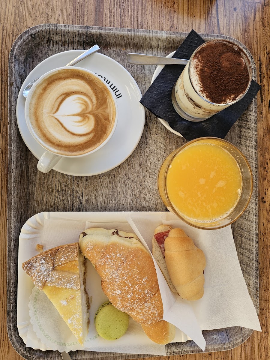 I had some of the best croissant with Dark Chocolate (the taste is not sweet, as I like) and the one with Pistachio as well. Also cornetto with Crema e Amarena is very puffy and nice! The croissant was 1.7 euro each.