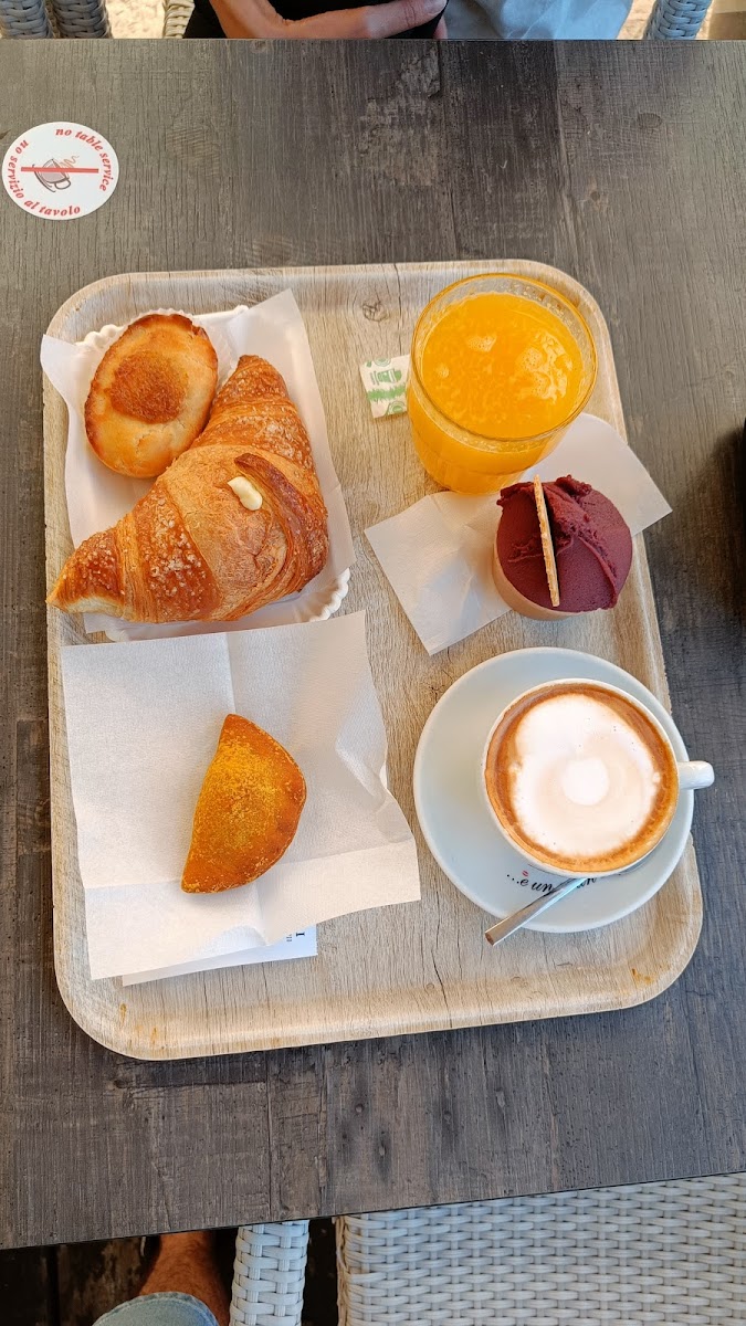 The menu unfolds naturally within the experience — a delicate balance between sweet and savory, from tender, flaky croissants filled with subtle notes of dark chocolate or creamy amarena cherry, to the rustic charm of traditional pasticciotti and gelato that carries a hint of local sweetness. Each item feels thoughtfully prepared, a small pleasure that complements the gentle energy of the café rather than rushing it.